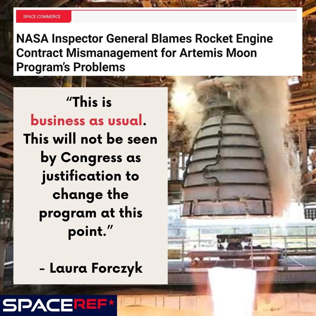 But “I wouldn’t say this is particularly surprising,” she told SpaceRef. “There have been reports coming out for years now about how delayed everything is, including these RS-25 engines and how much their costs overrun.”