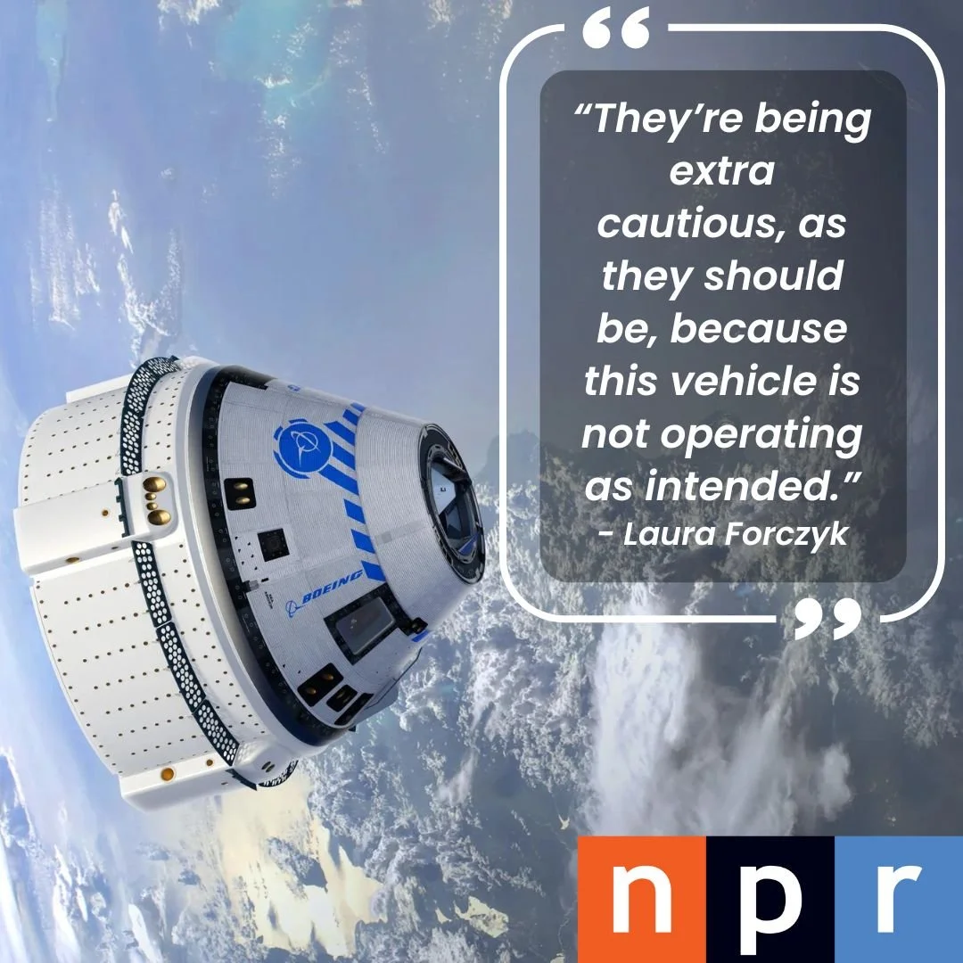 "No, they're not stranded. They completely expect to return with the Starliner capsule. But even if they didn't, there are two backup capsules by SpaceX and by the Russian Soyuz. That could take them back. But nobody is saying that they're not going to return with the Starliner." - Laura Forczyk